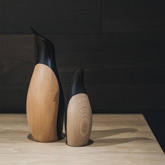 Hans Bunde schuf 1954 ursprünglich Pinguine, einen für jede seiner Schwestern. Jetzt sind wir stolz darauf, den Pinguin in einer Familie von zwei Größen zu präsentieren, die alle bereit sind, in die Welt zu gehen. Der Pinguin ist aus handbemaltem Buchenholz gefertigt. Der bemalte Boden stellt das schöne Gefieder des Vogels dar, während das unbemalte Gehäuse die natürlichen Eigenschaften des Holzes offenbart.