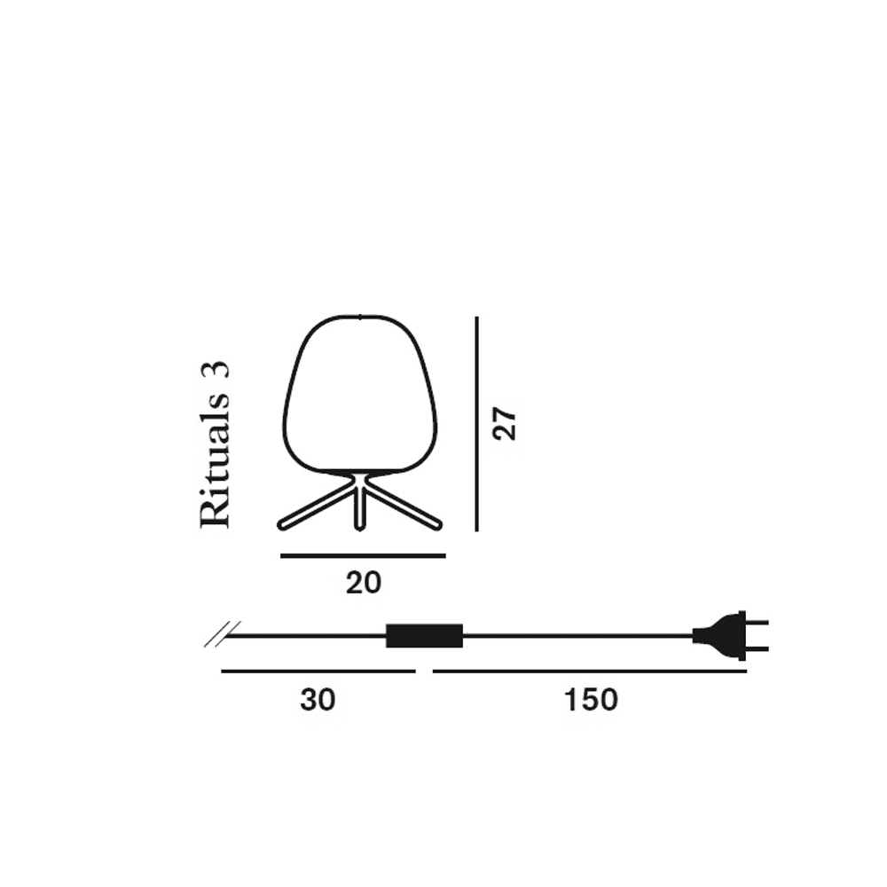 Model: Rituals 3 TischleuchteKollektion: RitualsMarke: FoscariniDesigner: Ludovica Palomba, Roberto PalombaKategorie: TischleuchteAbmessungen: B. 20 x H. 27 cmMaterialien: Geblasenes mundbeschichtetes Glas, satiniert und graviert, bemaltes MetallLichtquelle: Max 1x105W E27Inbegriffen: neinFassung: E27Schalter: on-off / dimmerEffizienz: A / B / C / D / E / F / G