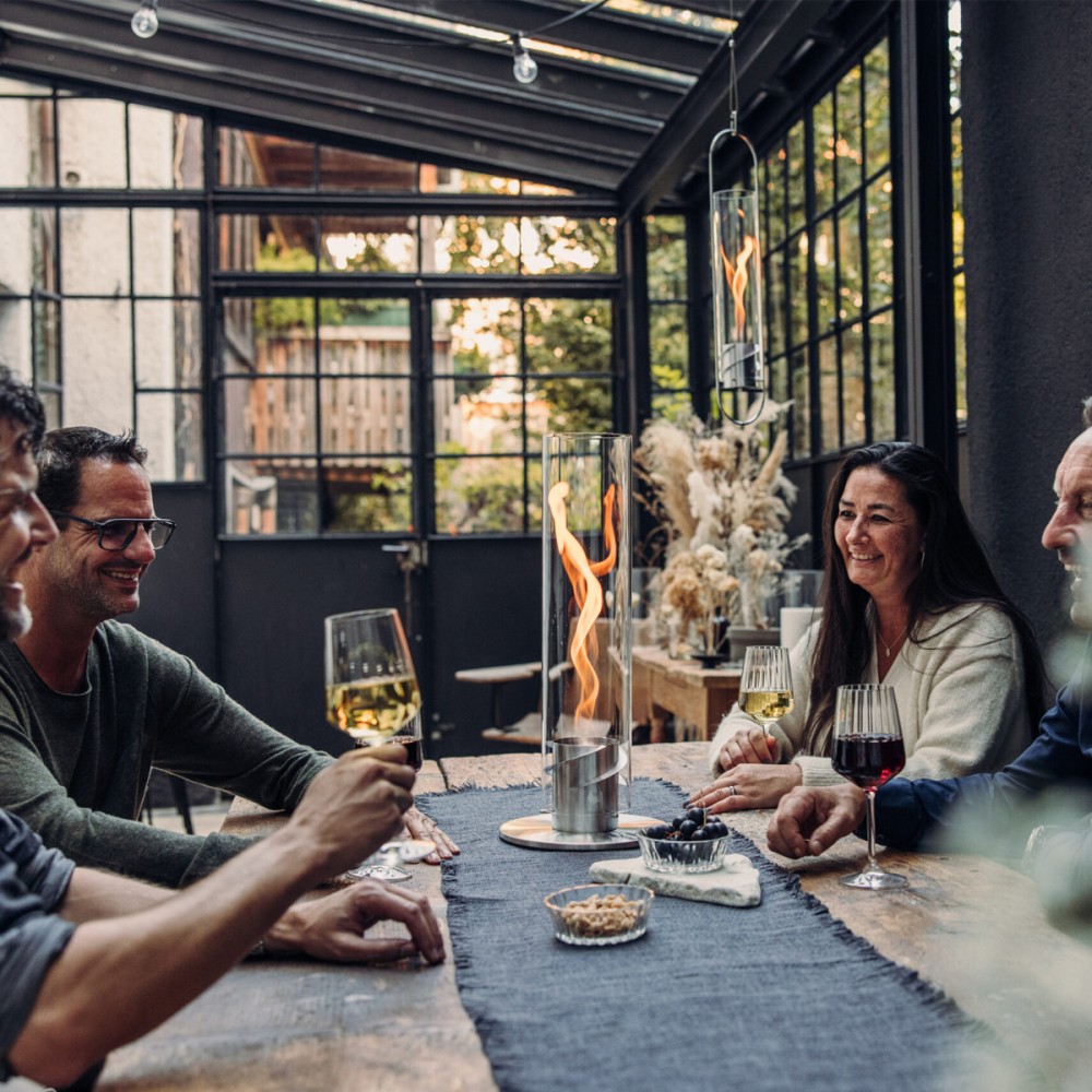 Gefertigt aus hochwertigem Edelstahl und Borosilikatglas, überzeugt der Spin 900 Tischkamin nicht nur durch seine ikonische Optik, sondern auch durch durchdachte Funktionalität. Der patentierte Bio-Brenner wird sicher und einfach mit Bioethanol-Flüssigbrennstoff befüllt und garantiert eine leuchtende Flamme für bis zu 1,5 Stunden. Mit einem Durchmesser von 19 cm und einer Höhe von 40,5 cm ist der Tischkamin kompakt, sofort einsatzbereit und ideal für Wohnzimmer, Esszimmer, Terrasse oder Lounge-Bereiche – drinnen wie draußen.