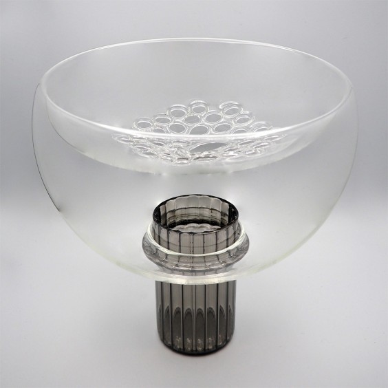 Die "Soufflé"-Vase ist die Übersetzung eines Konzepts, das die Grenzen der Funktion eines Produkts mit der emotionalen Freiheit verwechseln will, die durch die Einbeziehung des Benutzers entsteht. Auf diese Weise entstehen Objekte, die nicht mehr statischer Ausdruck eines bereits bekannten Motivs sind. Der venezianische Glasmeister wurde gebeten, eine Stickerei auf der Oberfläche des geblasenen Glases zu schaffen, ein Design, das Tausende von Lichtstücken reflektiert, und gleichzeitig ein Netz, das die Schnittblumen trägt und die Struktur einer lebenden Pflanze rekonstruiert.