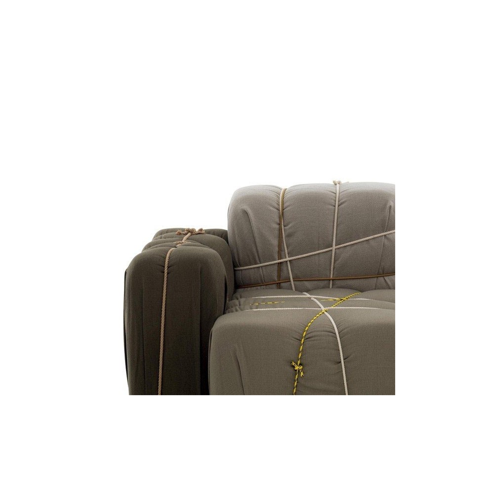 Weiche, großzügige Linien umarmen den Raum, während kunstvoll verflochtene farbige Seile das Auge fesseln: Der Contropakko Sessel von Mogg ist ein wahres Statement moderner Ästhetik. Die Kombination aus markanten Stoffbezügen in Sand, Hellbraun und Taupe, gepaart mit den bewusst gesetzten Seildetails in Rot, Weiß, Gelb oder Schwarz, verleiht diesem Sessel eine außergewöhnliche visuelle Tiefe. Die betonte rechte Armlehne setzt einen skulpturalen Akzent, während die harmonische Farbpalette und die weiche Polsterung eine Atmosphäre von entspannter Eleganz und inspirierender Leichtigkeit schaffen.