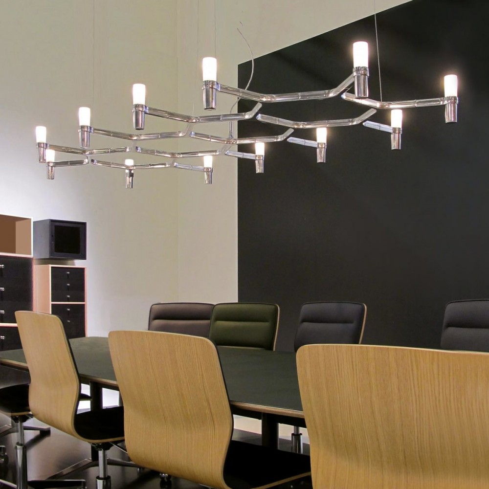 Gefertigt aus hochwertigem Aluminium und sandgestrahltem Glas, beeindruckt die Pendelleuchte mit einer Länge von ca. 115 cm, einer Breite von 71 cm und einer Höhe von 46 cm. Zwölf G9-Fassungen (je max. 25W, Leuchtmittel nicht enthalten) sorgen für flexible Lichtgestaltung, während die dimmbare Technik (abhängig vom Leuchtmittel und externem Dimmer) und das höhenverstellbare Kabel (bis 250 cm) vielseitige Einsatzmöglichkeiten bieten – von Esszimmer und Wohnzimmer bis hin zu modernen Konferenzräumen oder Hotellobbys.