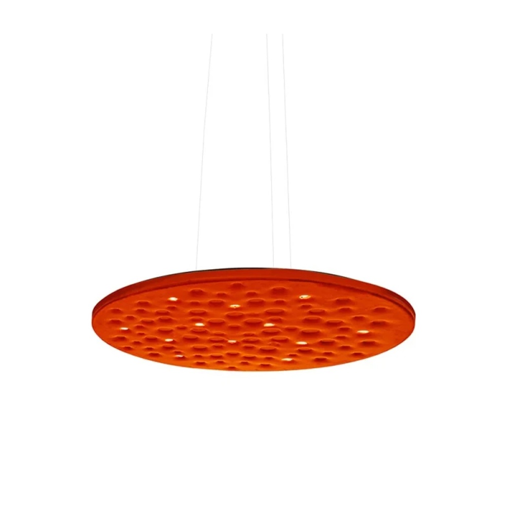 Crafted from sound-absorbing polyester fiber and supported by a sleek aluminum structure, the Silent Field 2.0 pendant lamp excels in both form and function. Advanced acoustic panels on both upper and lower surfaces reduce reverberation, optimizing clarity for human speech and significantly improving auditory well-being. Integrated LEDs deliver powerful, uniform illumination—direct and indirect—with a high color rendering index (CRI90) and a welcoming 3000K warmth. The lamp is dimmable (Push/DALI), measures 1200 mm in diameter and 55 mm in height, and is suspended by adjustable cables up to 2000 mm, making it ideal for offices, meeting rooms, restaurants, and sophisticated living spaces.
