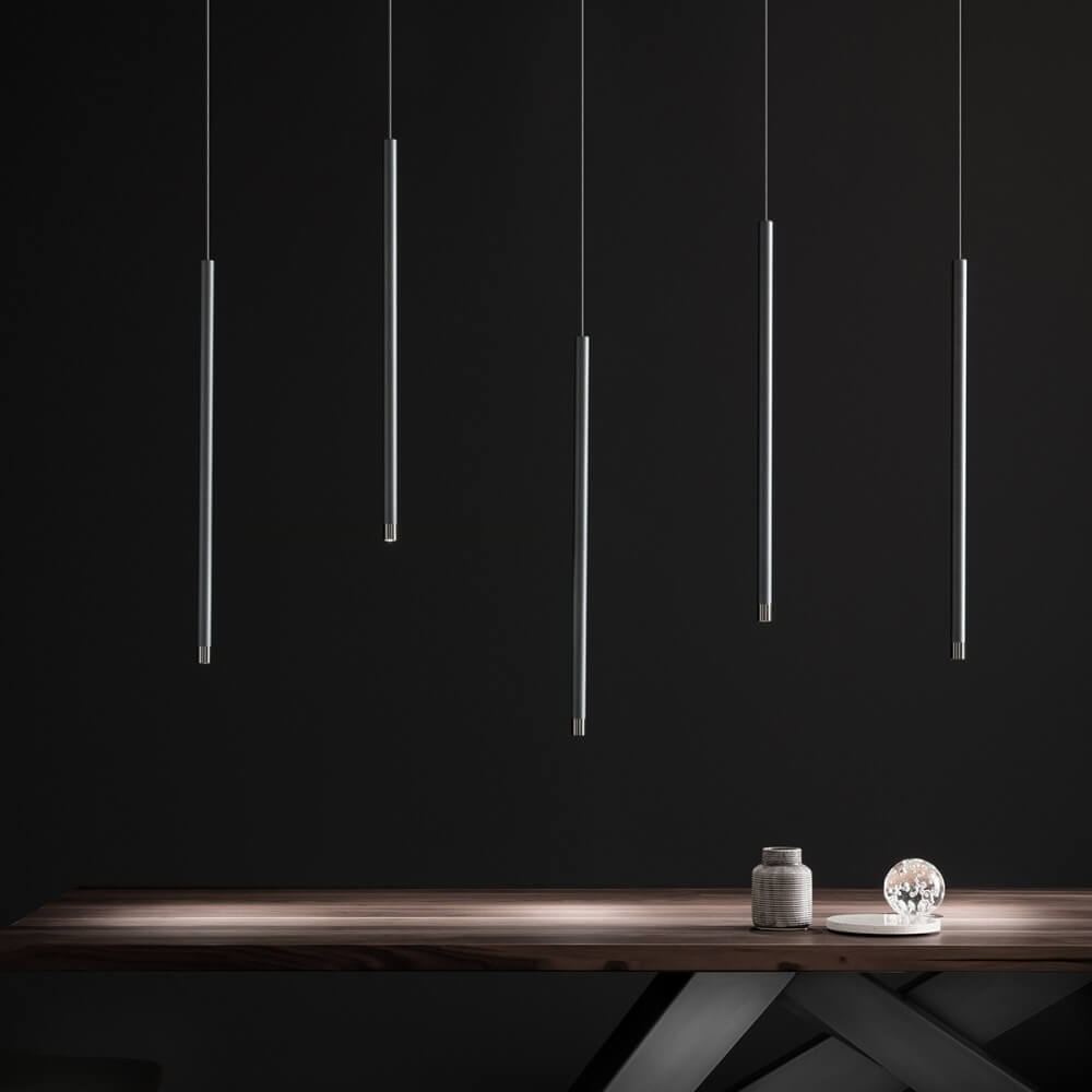 Crafted from lightweight aluminium, this suspension light features an integrated, dimmable LED source (6.5W, 671lm, 3000K warm white), ensuring high efficiency and smooth, customisable illumination. Its hidden suspension enhances visual weightlessness, while the maintenance-free LED technology eliminates the need for bulb changes. Measuring 1200 mm in length and weighing just 0.9 kg, the Virtus pendant lamp is perfect for accenting dining tables, kitchen islands, workspaces, or hotel lobbies—offering both task and ambient lighting with precise distribution and effortless style.