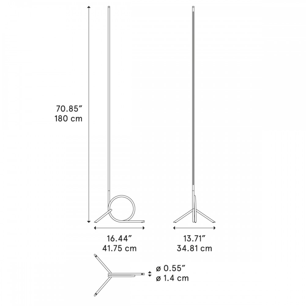 Spring floor lamp by Diesel with Lodes brings a sculptural presence to contemporary interiors, seamlessly uniting technical precision with subtle references to the world of fashion. Designed by Diesel Design, Spring is defined by its distinctive tubular metal rod, which bends back upon itself at the base to form a perfect circle—an elegant gesture that echoes the tension and poise of a safety pin. This minimalist yet expressive form anchors the lamp, its geometry both modern and timeless, making Spring an apt choice for living rooms and bedrooms alike.The Spring floor lamp is equipped with a high-performance LED light source: 30.5W, 2700K, 3050lm, CRI95. The integrated LED strip emits a crisp, linear wash of light, gently illuminating adjacent walls and creating a sophisticated interplay between object and architecture. The result is a refined ambience, where functionality meets understated artistry. Crafted from premium materials, Spring Diesel with Lodes embodies a versatile aesthetic, bridging classic and minimalist styles with ease. Its presence within a space is quietly confident, inviting a closer look at the details that set it apart.