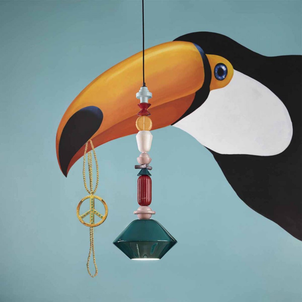 The Lariat C2532 pendant lamp by Ferroluce emerges from the designer’s vision of sculptural elegance and artisanal mastery. Each detail of the Lariat C2532 is meticulously crafted, with glazed ceramic beads forming a rhythmic chain that gracefully suspends the lamp in space. The interplay of subtle color variations and geometric forms creates an atmosphere that is both refined and inviting, casting a gentle, ambient glow that transforms any setting into a haven of sophistication and warmth.