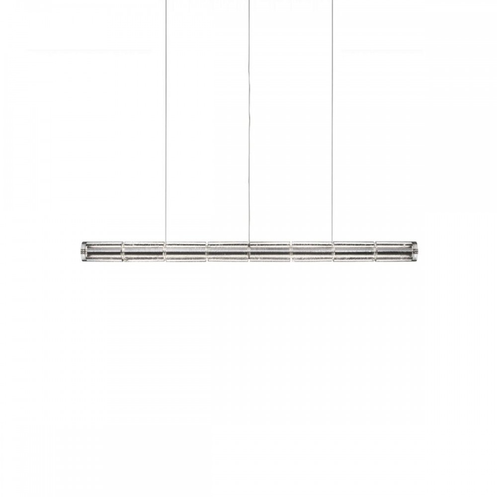 The Luce Orizzontale pendant lamp by Flos, created by Ronan & Erwan Bouroullec, is a masterstroke of contemporary design—a weightless line of sculptural glass cylinders that appears to float effortlessly in space. Each hand-blown element captures and diffuses a warm, inviting glow, transforming any room into a gallery of light and shadow. Minimalist yet expressive, its architectural form and shimmering anodized aluminum details evoke quiet sophistication, making the Luce Orizzontale pendant lamp a captivating centerpiece for modern dining rooms, elegant lounges, or refined hospitality spaces.