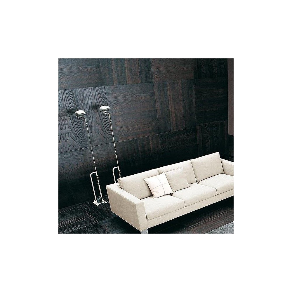 The Toio floor lamp by Achille Castiglioni for Flos is a bold statement of industrial artistry, where utilitarian inspiration meets minimalist elegance. Its telescopic steel stem rises with effortless grace, crowned by a distinctive exposed bulb reminiscent of vintage car headlights, while visible wiring and a weighted base pay homage to functional design. The result is a sculptural presence that transforms any setting, casting a powerful, focused uplight that bathes rooms in a warm, ambient glow—perfect for creating inviting atmospheres in modern living spaces and creative studios.