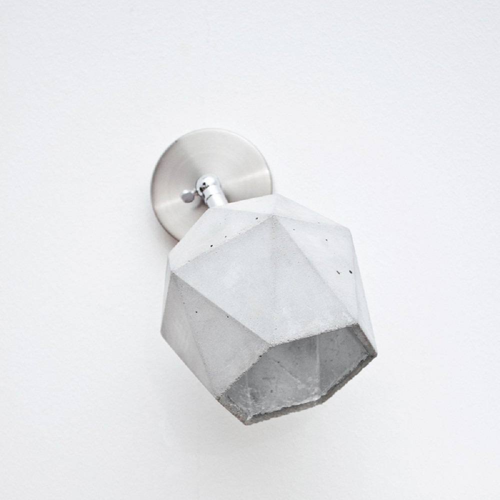 The T2 Wall Spot wall lamp by Gant Lights, conceived by designer Stefan Gant, distills minimalist sensibility into a striking geometric form. Cast in light grey concrete, its triangular body is defined by crisp edges and an understated presence, measuring 12 x 10 x 10 cm. The austere exterior contrasts with an interior meticulously gilded in gold, a union of raw materiality and refined luminosity that transforms the lamp into a sculptural element.When illuminated, the T2 Wall Spot wall lamp emits a gentle, warm light, its golden core diffusing a soft glow that animates adjacent surfaces. The interplay of concrete and gold creates a visual tension, allowing the piece to function as either a singular accent or as part of a rhythmic sequence along walls or ceilings. Suitable for living rooms, bedrooms, kitchens, bathrooms, or as a mirror companion, the T2 Wall Spot Gant Lights adapts seamlessly to a variety of contemporary environments.Engineered for versatility, the lamp accommodates a 1x40W E14 light source, ensuring practicality alongside its aesthetic rigor. The T2 Wall Spot wall lamp embodies a modern, minimalista approach, articulating a quiet sophistication that resonates across diverse interiors.