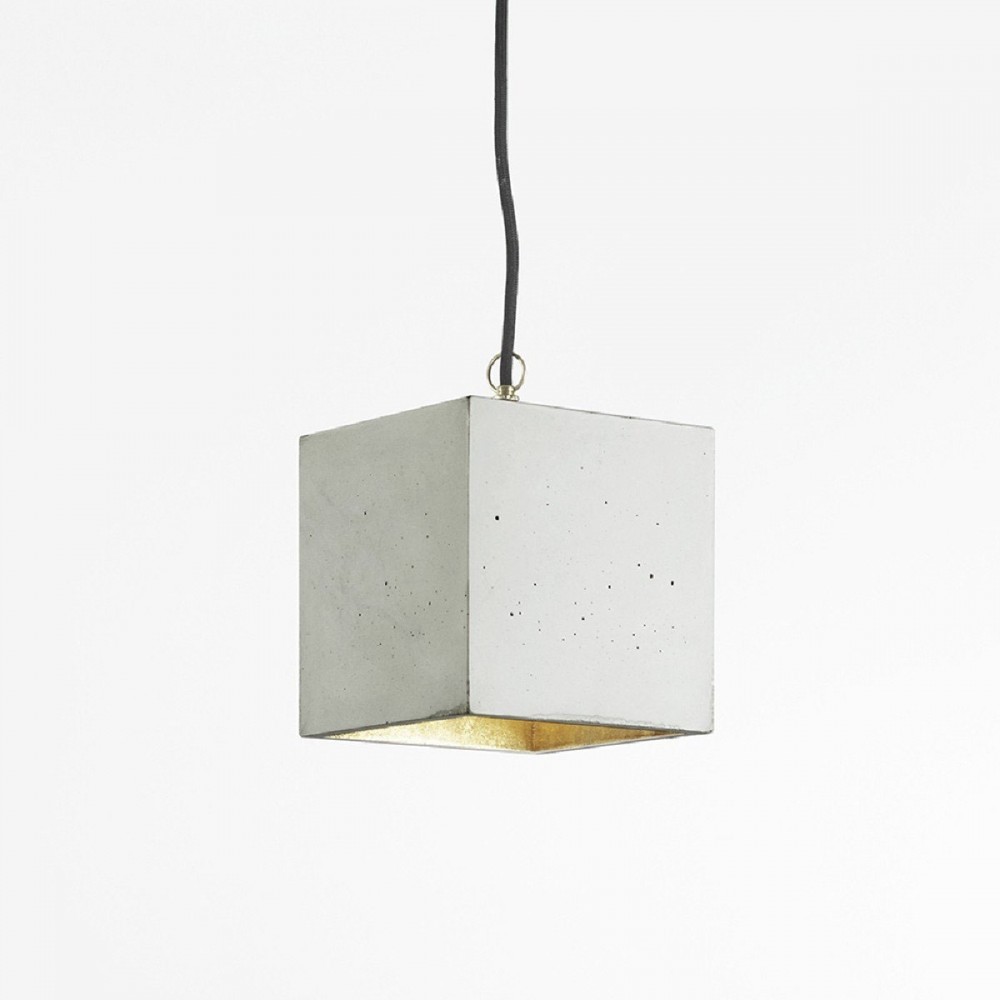 B5 by Gant Lights, conceived by Stefan Gant, is a cubic pendant lamp defined by the interplay of elemental materials and refined detail. Its 18-centimeter geometric form is cast in pale grey concrete, imparting a tactile presence that anchors the luminaire in space. Internally, the surface is carefully gilded, allowing the B5 pendant lamp to diffuse a gentle, golden illumination that softens the austerity of its exterior.The juxtaposition of raw concrete and luminous gold yields an object both understated and striking, adaptable to a range of interiors—from contemporary living rooms and serene bedrooms to kitchens, bathrooms, and workspaces. Whether suspended as a singular focal point or arranged in a linear sequence above a dining table or bar, the B5 Gant Lights pendant lamp offers a quiet yet unmistakable character.Equipped with a single E27 lamp source up to 40W, the B5 pendant lamp delivers functional, atmospheric light while maintaining a disciplined, minimalist silhouette. As a wall or ceiling fixture, it invites dialogue between architecture and illumination, seamlessly integrating into modern environments while providing a subtle accent through its material contrast.