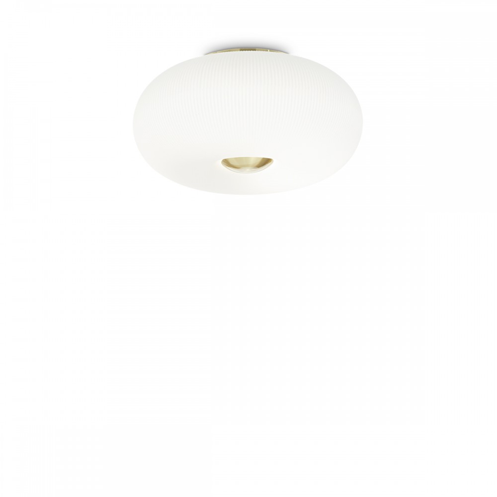 The vision of Ideal Lux comes to life in the ceiling lamp Arizona, a masterful blend of modern elegance and understated luxury. With its satin brass metal frame and white blown glass diffuser, delicately etched with decorative relief stripes, the Arizona ceiling lamp brings a sense of refined tranquility to any room. Its minimalist silhouette and flush-mounted design create a seamless, ambient glow—effortlessly elevating contemporary interiors with a warm, inviting atmosphere that feels both sophisticated and serene.