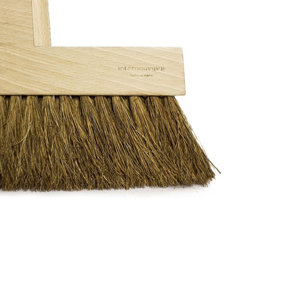 Pula by Internoitaliano, designed by Giulio Iacchetti, reimagines classic household tools with a modern perspective. Its main structure is crafted from beech wood, holding natural bristles made of broomcorn or coconut fiber—softer for indoor use, sturdier for outdoor tasks. The handle fits into the base with a wooden fork reminiscent of traditional forms, while slender pins and a decorative wooden ring reinforce the assembly and add a subtle visual accent. Pula balances function and refined design, highlighting the quality of its materials and craftsmanship with understated simplicity.