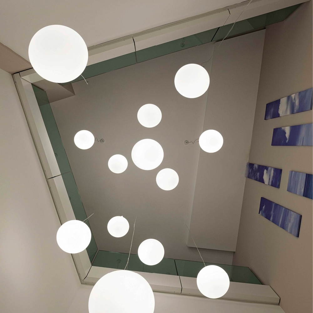 Crafted from durable polyethylene and finished in pristine white, the Oh pendant lamp is available in four versatile diameters—29 cm, 38 cm, 45 cm, and 55 cm—to suit any space. The adjustable suspension cable allows for flexible installation, while the E27 socket accommodates a range of bulb wattages (30W, 46W, or 57W, depending on the size). Rated IP65 for added resilience, this lamp is perfect for both residential and hospitality settings, offering diffused illumination that enhances living rooms, dining areas, kitchens, and open-plan offices with ease.