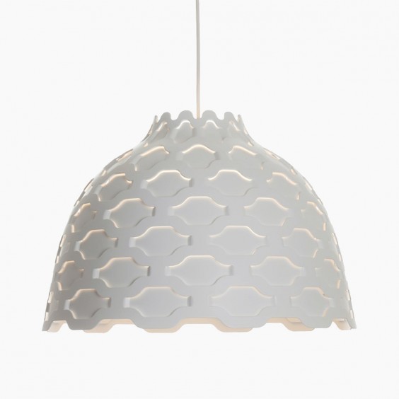 Crafted from spun, powder-coated aluminum with a pristine white lacquered finish, this pendant lamp measures 440 mm in diameter and 301 mm in height. It accommodates an E27 light source (up to 70W, LED or incandescent compatible; bulb not included) and offers full dimmability when paired with a suitable bulb. A 3-meter white textile cord and matching ceiling rose allow flexible installation, while its IP20 rating ensures safe indoor use. Ideal for dining rooms, living spaces, bedrooms, cafés, or reception areas, the LC Shutters pendant lamp delivers both functional illumination and decorative ambiance.