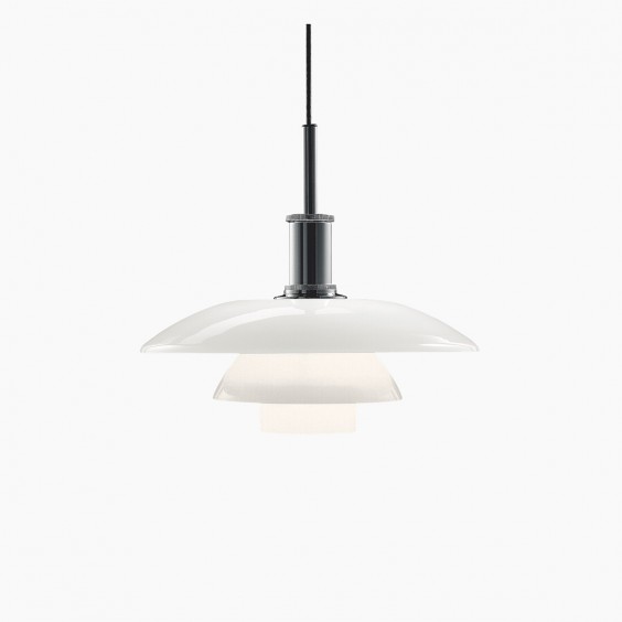 Meticulously crafted, the PH 4 1/2-4 Glass pendant lamp features a multi-shade system in white opal glass, paired with a brushed chrome-plated brass suspension for a seamless, minimalist look. Measuring Ø 450 mm by 410 mm, it accommodates a single E27 bulb (max 100W, LED or incandescent; bulb not included) and offers dimmability for tailored lighting moods. With a generous 3-meter white textile cord and an IP20 rating, it’s ideal for residential and commercial interiors seeking both function and timeless design.
