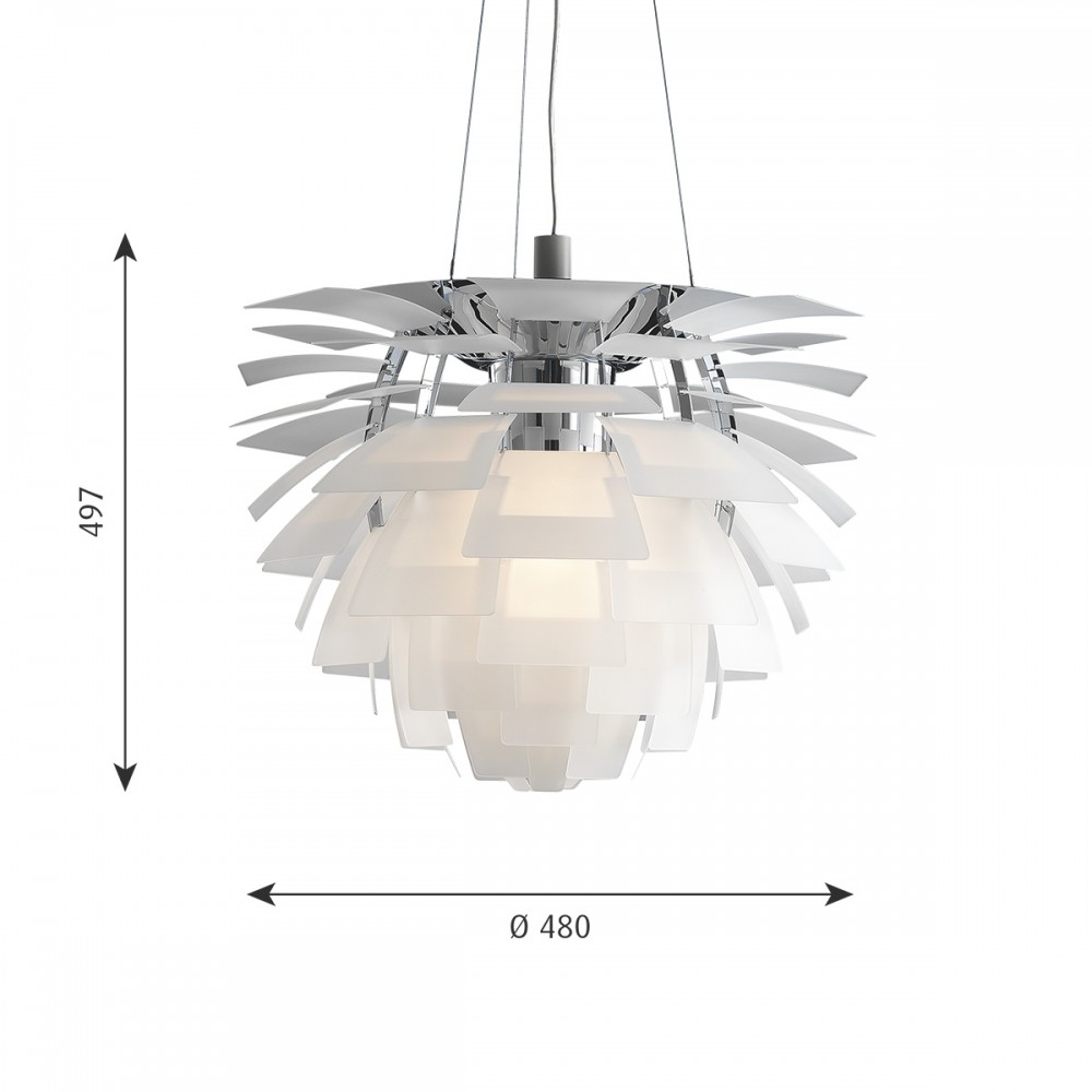 The PH Artichoke Glass pendant lamp by Poul Henningsen for Louis Poulsen is a masterpiece born from the designer’s vision of sculptural illumination and pure form. With 72 meticulously hand-blown glass leaves arranged in twelve harmonious rows, this iconic pendant lamp radiates a captivating interplay of light and shadow, enveloping any room in a warm, inviting glow. Its organic silhouette and transparent glass construction create an atmosphere of refined elegance, making the PH Artichoke Glass pendant lamp a stunning focal point in both modern and timeless interiors.