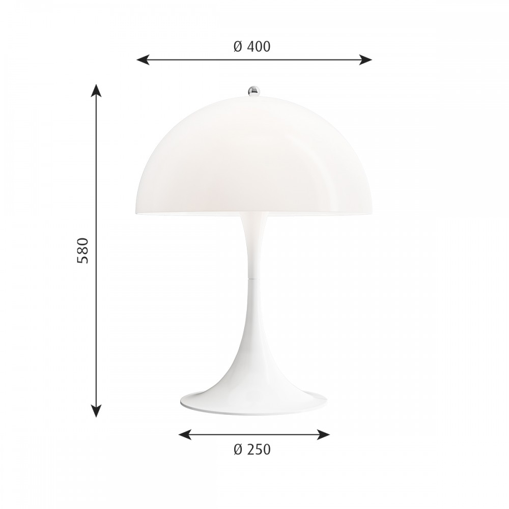 Expertly crafted from acrylic or metal, with a shade diameter of approximately 250 mm and a height of 335 mm, this table lamp is both lightweight and durable. It features an E27 socket (max 28W, LED compatible; bulb not included), a 2.5-meter cord with inline on/off switch, and is CE marked for quality assurance. While not inherently dimmable, it can be used with dimmable bulbs and an external dimmer for added versatility. Available in opal white, brass, chrome, and special editions, the Panthella table lamp complements contemporary, minimalist, and Scandinavian interiors alike.