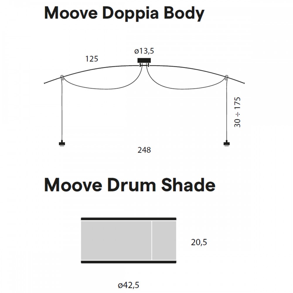 Moove Doppia pendant lamp by Lumina, designed by Francesco Brambilla, redefines versatility in contemporary lighting. Two cylindrical shades, each measuring 42.5 cm in diameter, are suspended with precision from a carbon fibre track arm. The track’s unique ability to rotate brings an innate flexibility, allowing the lamp to adapt effortlessly to changing spatial needs.Each shade houses a 75W E27 bulb, casting a focused yet gentle illumination downward—ideal for accenting surfaces or providing ambient comfort in living rooms, bedrooms, or kitchens. The interplay of modern engineering and timeless form places Moove Doppia seamlessly within both classic and modern interiors.Materials are chosen for their lightness and strength, with carbon fibre ensuring stability without sacrificing elegance. Moove Doppia Lumina stands as a testament to considered design, where movement and light coalesce in silent harmony.