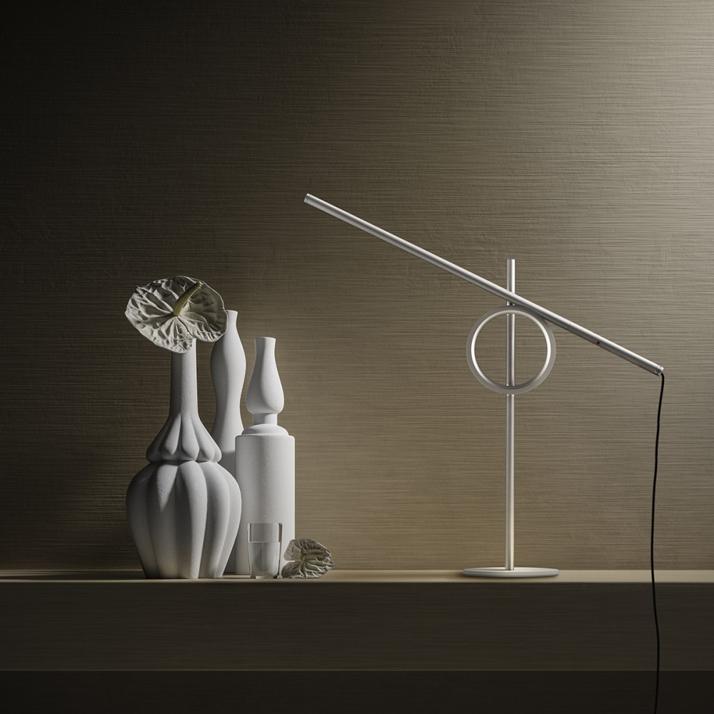 A study in equilibrium, Tangent Mini by Jenkins & Uhnger for Pallucco explores the intersection of geometry and illumination. The Tangent Mini table lamp presents a minimal yet expressive composition: a slender linear LED, seamlessly integrated with a dimmer, is encased within a refined light tube. This element delicately rests upon a circular pedestal, engaging in a silent interplay of tension and friction. The result is a lamp whose position and angle can be subtly altered, granting the user nuanced control over both atmosphere and direction of light.Tangent Mini’s structural clarity is matched by its versatility. The 4.8W LED strip emits a warm 3000K glow at 1080 lumens, balancing efficiency with comfort for living rooms, bedrooms, and workspaces alike. The lamp’s modern and classic sensibility—marked by minimalist lines and sculptural presence—allows it to inhabit diverse interiors, whether as a discreet companion or a quiet focal point.Engineered to invite touch, Tangent Mini Pallucco transforms the act of adjustment into a tactile experience, making the articulation of light an integral part of daily ritual. Its materials and construction, precise yet understated, emphasize the essential: light, balance, and the subtle invitation to interact.