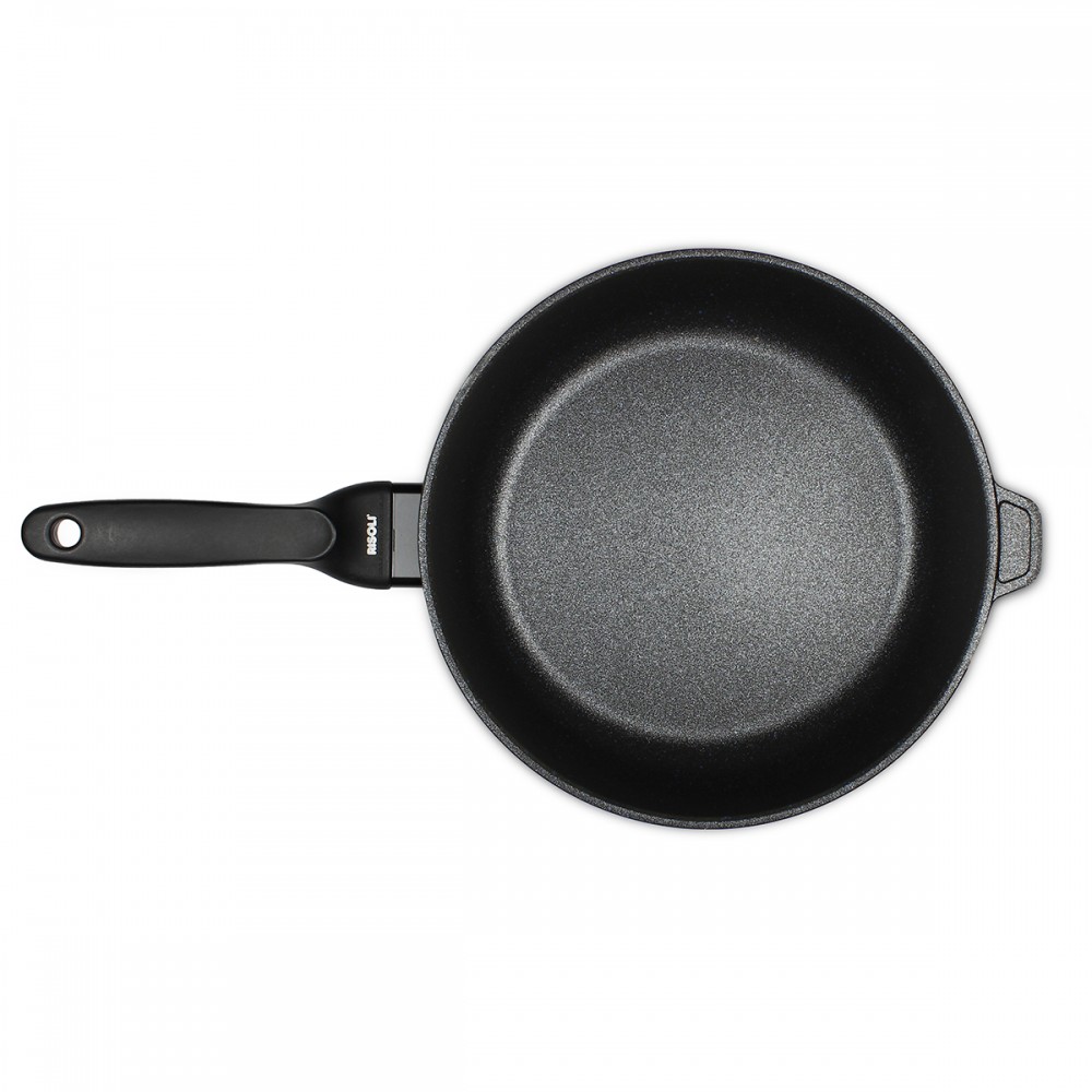 Engineered from high-thickness die-cast aluminium, this deep saucepan ensures optimal thermal conductivity and uniform heat distribution, minimizing hot spots and energy loss during cooking. The interior is finished with the ELDIAMANT Profile® coating, incorporating silicon carbide (SiC) particles synthesised to provide diamond-like scratch resistance, tested for durability beyond 40,000 cycles. The BLACKplus Induction deep saucepan is compatible with all hob types, including induction, gas, electric, ceramic, and halogen, due to its magnetized base and precision-machined flatness. Ergonomically contoured handles offer secure, comfortable grip and remain cool during stovetop use. The seamless non-stick surface of the Risoli BLACKplus Induction deep saucepan allows for effortless food release and easy cleaning, while preserving the intrinsic qualities of die-cast aluminium for consistent performance in demanding kitchen environments.