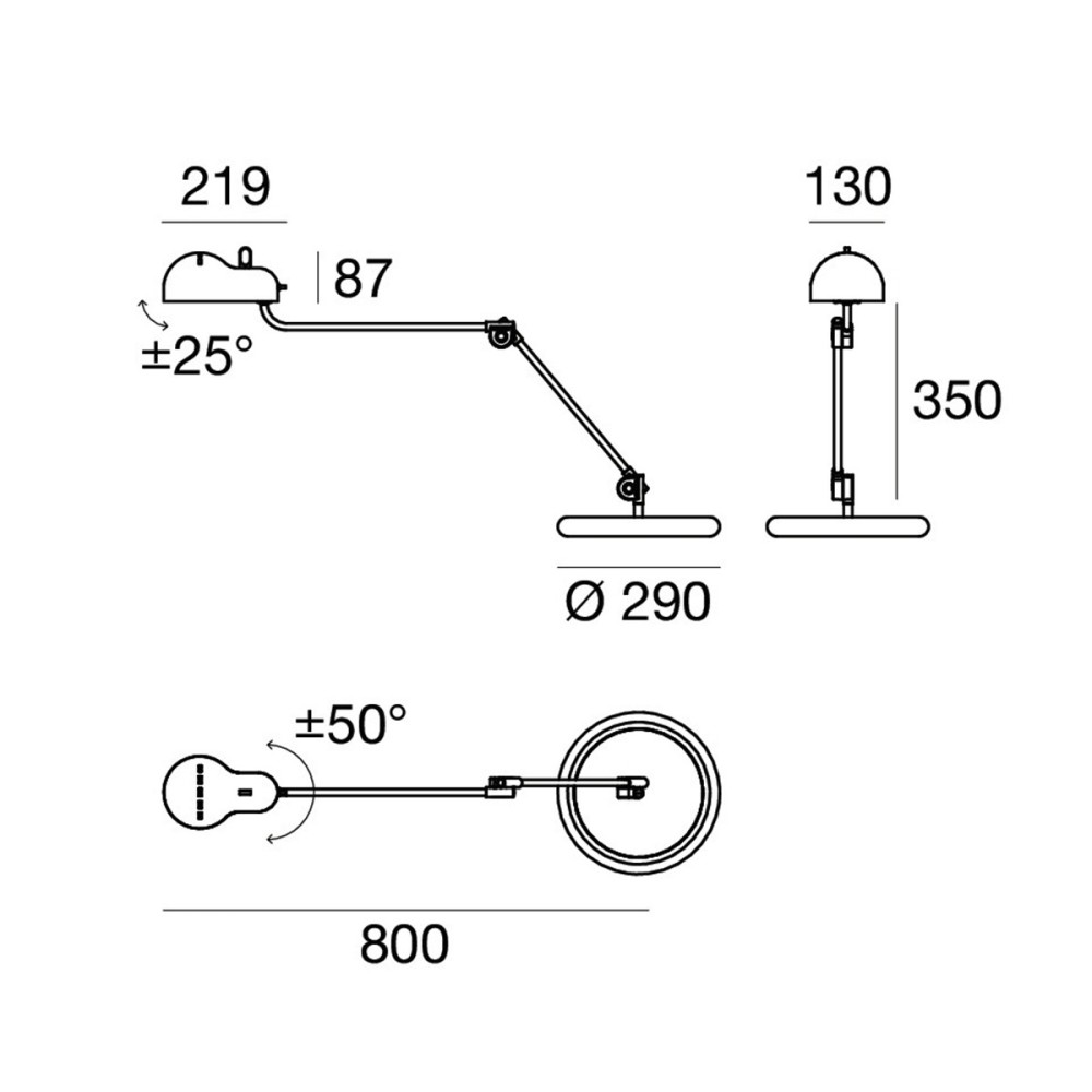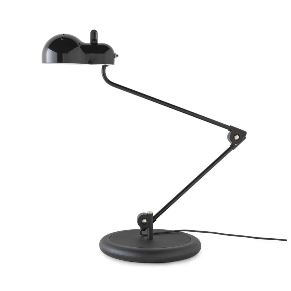Topo table lamp by Stilnovo, designed by Joe Colombo, offers a refined interpretation of classic forms enriched by subtle automotive references. The metal shade, crafted with precision, features distinctive slits that echo the functional elegance of mid-century sports cars, while its contours gently envelop the familiar silhouette of an E27 bulb. Articulated metal arms grant flexible adjustment, allowing Topo to adapt seamlessly across living rooms, bedrooms, or workspaces. A thoughtfully designed handle, made from heat-insulating material, ensures comfortable repositioning. Fitted with a 1x7W E27 LED retrofit light source, this table lamp blends modern and timeless influences, presenting a singular balance of character and utility.