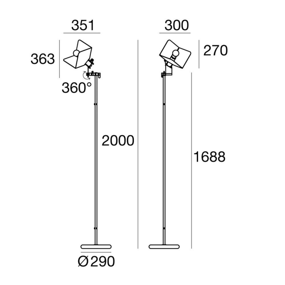 The Triedro floor lamp by Stilnovo, designed by Joe Colombo, draws inspiration from the world of professional photography, reinterpreting the functional essence of studio lighting through a contemporary lens. The lamp features a distinctive metal lampshade, sculpted from three precisely angled panels, which softens and directs the beam from the 7W E27 LED source. Its silver-domed bulb offers a balanced, glare-free illumination suited to both living areas and bedrooms, seamlessly navigating between modern and classic interiors. Movement comes naturally to Triedro: a dual-jointed mechanism allows the lamp head to rotate, tilt, and glide along its steel stem, anchored by a stable, circular base finished in polyethylene. Every element, from the shade to the supporting rod and bulb holder, is rendered in robust metal, underscoring its architectural presence. The Triedro floor lamp stands as a thoughtful expression of Joe Colombo’s design language—dynamic, versatile, and unmistakably Stilnovo.