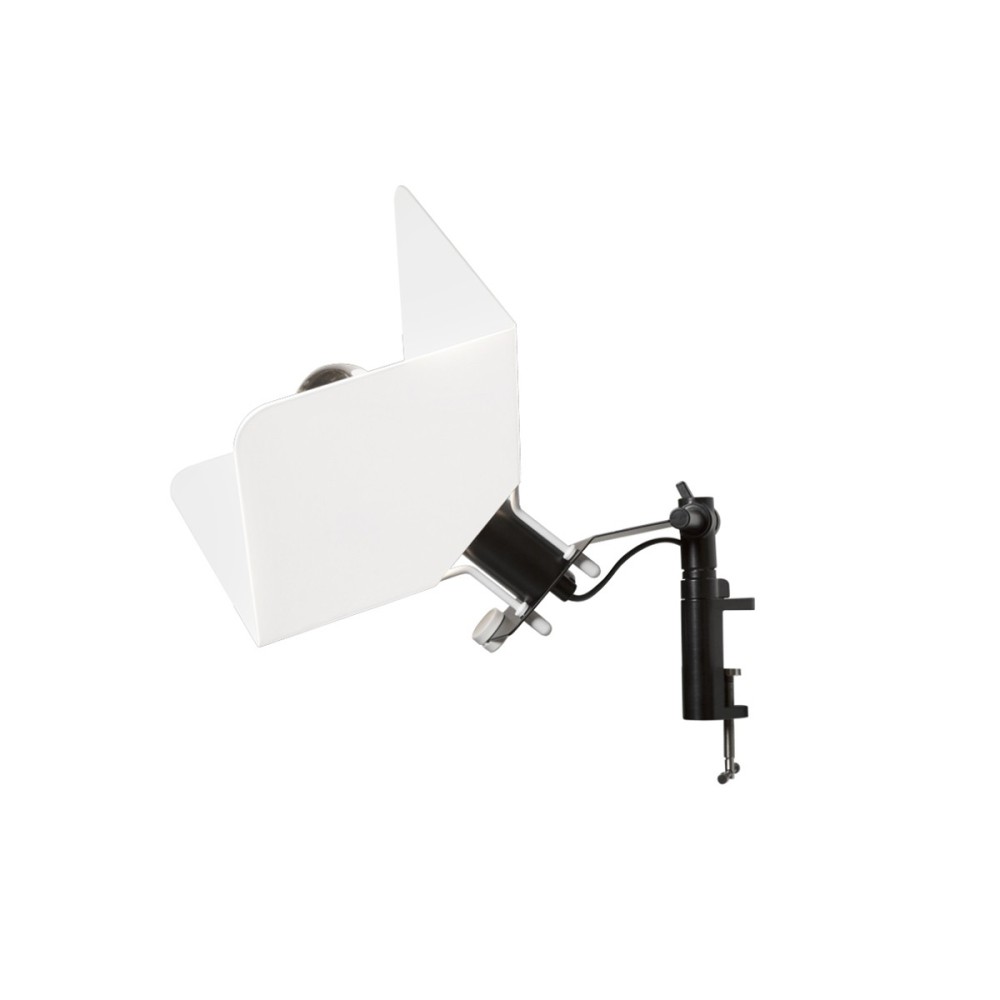 Triedro Morsetto, designed by Joe Colombo for Stilnovo, reinterprets the classic wall lamp with an unmistakable sculptural approach. The shade, crafted from three precisely contoured and bent metal panels, frames the light and directs its soft glow downward, reducing glare while enhancing visual comfort. A silver-domed LED bulb sits within, its light subtly amplified by the lamp’s reflective surfaces. The double-jointed structure allows for effortless adjustment, offering flexibility to orient the illumination as needed. With its modern yet timeless silhouette, the Triedro Morsetto wall lamp integrates naturally into both contemporary and classic interiors, embodying Colombo’s vision of practical elegance. Constructed entirely from metal, this wall lamp pairs technical sophistication with a distinctive character, making it a refined addition to any setting. Compatible with a 7W E27 LED light source.