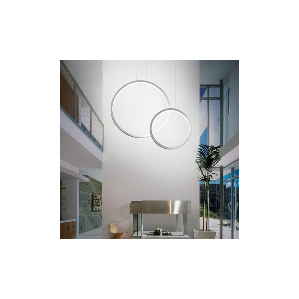 Realizzata in alluminio pressofuso verniciato bianco, questa creazione di Cini & Nils integra un LED da 27W (2900lm, 2800K, CRI92) per un’illuminazione indiretta, morbida e regolabile grazie alla funzione dimmer. Il rosone a soffitto racchiude alimentatore e regolatori millimetrici dei cavi, garantendo un’installazione precisa e personalizzabile fino a 250 cm d’altezza. Con un diametro di 43 cm e un corpo sottile di 5,5 cm, la lampada a sospensione Assolo 43 si adatta perfettamente a soggiorni, sale da pranzo, spazi contract e ambienti rappresentativi dove è richiesta una luce elegante e mai invasiva.