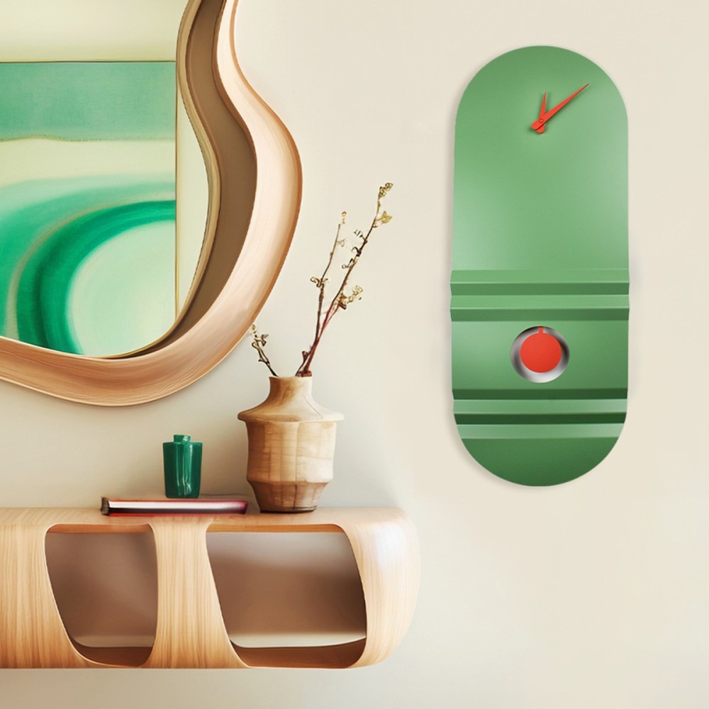 Luce vibrante e linee essenziali si fondono nell’orologio a pendolo Dublino, una creazione firmata Creation Design che trasforma la parete in un racconto visivo ispirato al cuore verde d’Irlanda. Il suo sfondo verde brillante richiama i paesaggi lussureggianti e l’atmosfera conviviale dei pub di Dublino, mentre la forma rettangolare allungata e il pendolo a vista donano movimento e raffinatezza a qualsiasi ambiente. Ogni dettaglio di questo Dublino orologio a pendolo celebra l’incontro tra tradizione e design contemporaneo, regalando un tocco di vitalità e personalità a soggiorni, ingressi o studi.