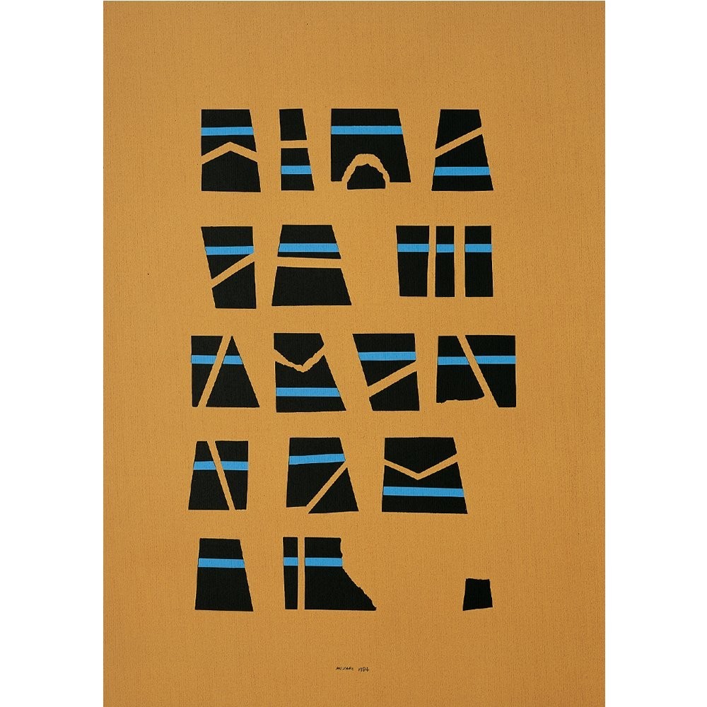 Bruno Munari firma la stampa "Scrittura illeggibile ocra" per Danese Milano, trasformando la parola in un gesto grafico essenziale e ritmico. L’opera cattura lo sguardo con una composizione astratta e manuale, in cui il segno si libera dal significato testuale per diventare armonia visiva e materia pura. La palette ocra, esaltata dalla stampa serigrafica a tre colori, trasmette una presenza raffinata e minimale, ideale per chi desidera arricchire gli ambienti con un elemento di arte concettuale dal forte impatto estetico.
