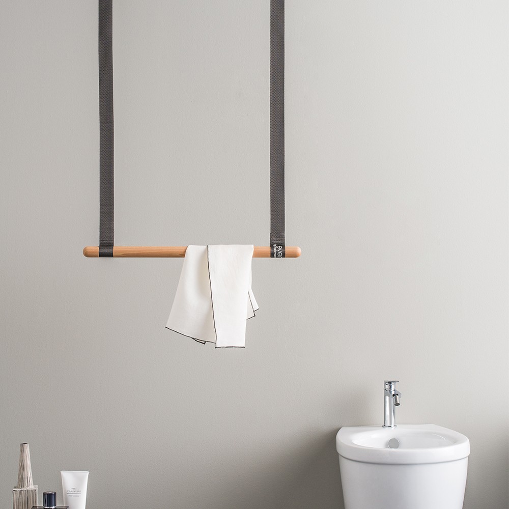 L’innovazione di Gambol portasalviette si esprime nella sua versatilità: può essere fissato a parete o a soffitto, adattandosi con facilità a qualsiasi contesto grazie alle cinghie regolabili (da 125 a 250 cm) e alla barra da 60 cm. Il legno di faggio garantisce solidità, leggerezza (solo 1,2 kg) e una piacevole sensazione al tatto, mentre la portata fino a 5 kg lo rende pratico per asciugamani, teli o accappatoi. Un elemento pensato per bagni domestici, aree wellness, spa e spogliatoi, facile da montare e semplice da mantenere.