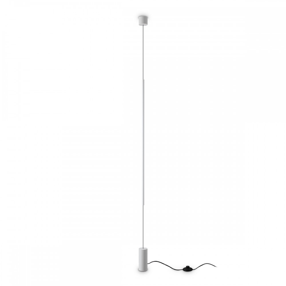 Dotata di sorgente LED integrata da 15W (3000K, 1600lm) inclusa, Filo garantisce efficienza energetica e comfort visivo. Il cavo nero in PVC con spina assicura massima libertà di posizionamento e facilità di installazione, mentre la base d’appoggio a terra e il diffusore dal diametro di 6 cm (altezza totale 200 cm) esprimono un’estetica versatile. Adatta come punto luce principale o d’accento, la Filo terra sospensione si integra perfettamente in soggiorno, camera da letto, studio e ingressi, così come in lounge e hotel.