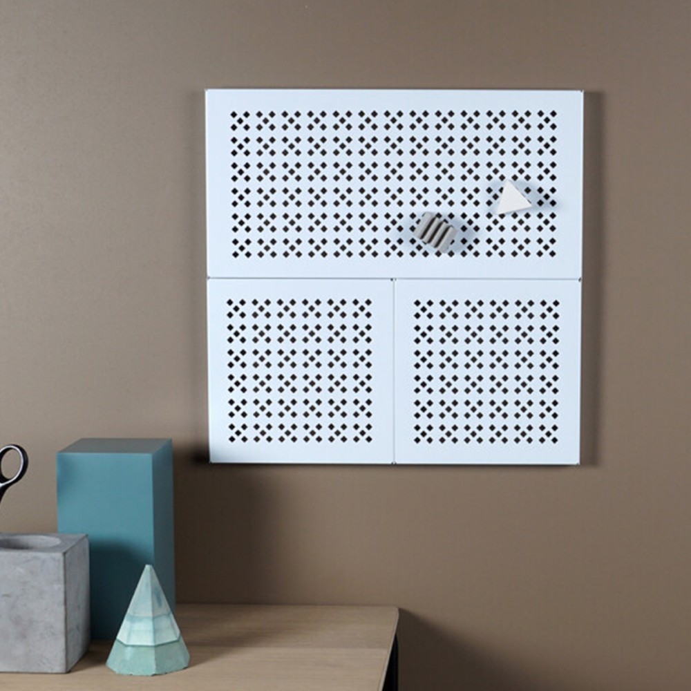 I telai MAG Frame sono lavagne magnetiche realizzate con pannelli metallici perforati. Le cornici funzionali sono perfette per appunti, disegni, foto e cartoline con magneti colorati. Le lavagne si adattano a qualsiasi spazio, sia che si tratti della vostra cucina o dell'ufficio contemporaneo.Trasparenza e flusso sono le principali impressioni che si ottengono guardando le cornici MAG Frames. Il motivo traforato permette agli occhi di vagare e la sensazione di uno spazio segreto dietro la superficie aggiunge una dimensione in più alla stanza.