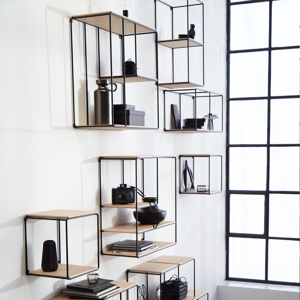ModelloAnywhere A-401 mensolaDittaKorridorDesignerOoojaDimensioni69 x 70 x 29 cmPeso13 kgMaterialemensole in legno sostenibile FSC, struttura in pali in acciaio e ripiani in rovere