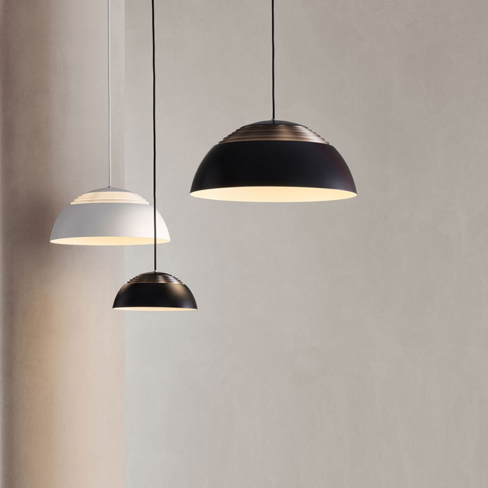 La purezza della geometria incontra la luce: AJ Royal sospensione di Louis Poulsen, disegnata da Arne Jacobsen, si distingue per la sua cupola emisferica essenziale e i caratteristici anelli superiori. Il profilo elegante, privo di dettagli superflui, cattura lo sguardo e diffonde una luminosità morbida e senza abbagliamento, creando un’atmosfera di raffinata serenità in sala da pranzo, cucina o ambienti contract. L’effetto visivo è quello di una presenza silenziosa, capace di valorizzare con discrezione ogni spazio contemporaneo.