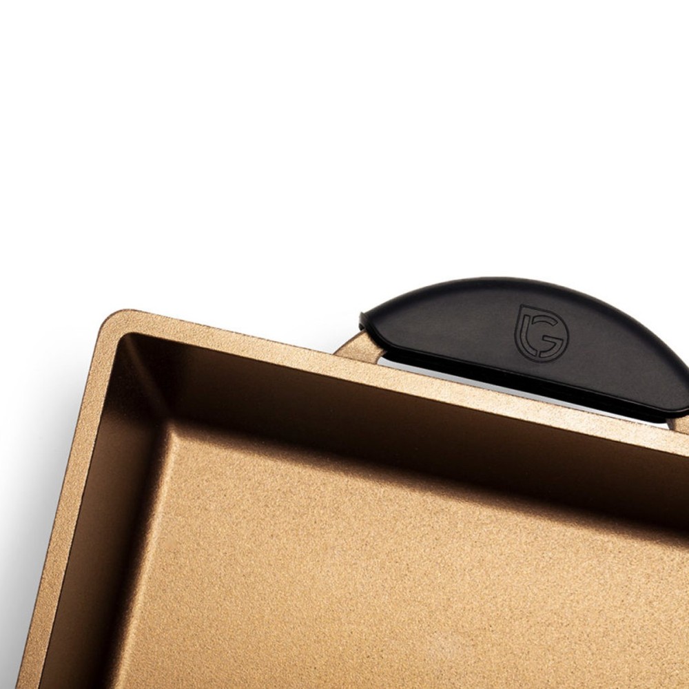 Realizzata in alluminio pressofuso certificato, questa pentola rettangolare K360 da 25x35 cm garantisce una distribuzione uniforme del calore e una notevole resistenza strutturale anche durante un utilizzo intensivo. Il rivestimento interno Greblon Non Stick C3+ Primer Add X, sviluppato dalla ditta tedesca Weilburger, offre proprietà antiaderenti avanzate e una durabilità superiore contro graffi, abrasioni e usura prolungata. Lampia superficie della Luchetti K360 pentola rettangolare favorisce la cottura omogenea di grandi quantità di alimenti, rendendola adatta sia per la cucina professionale che per luso domestico quotidiano. Compatibile con tutti i piani cottura gas, elettrico, alogeno, vetroceramica, forno e induzione la pentola rettangolare K360 assicura versatilità operativa e facilità di pulizia, mantenendo inalterate le prestazioni nel tempo. Manici ergonomici e design funzionale completano le caratteristiche tecniche, offrendo una presa sicura e una movimentazione agevolata anche a pieno carico.