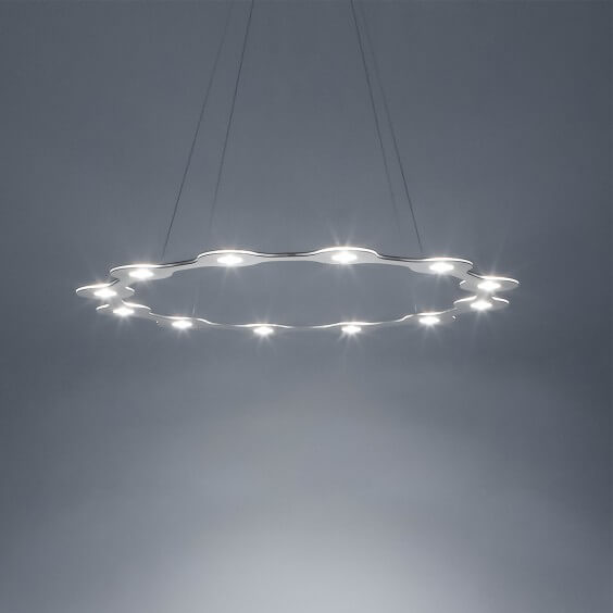 Sperimentazioni innovative, sorgenti luminose alternative e uno sguardo costante al futuro rendono le lampade LUMEN CENTER dei prodotti di design all'avanguardia, con un look giovane e moderno.Flat Ring 6: H.max 300 x L.56 x P.63 cm