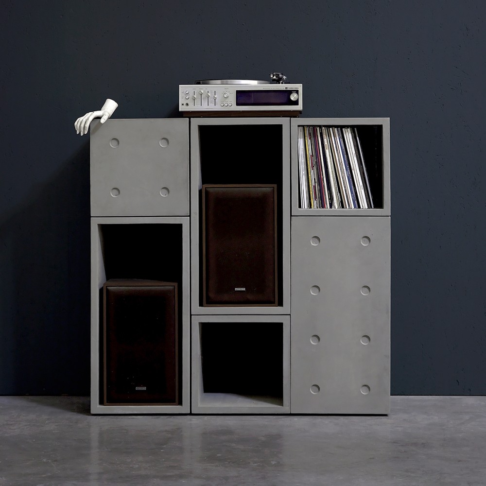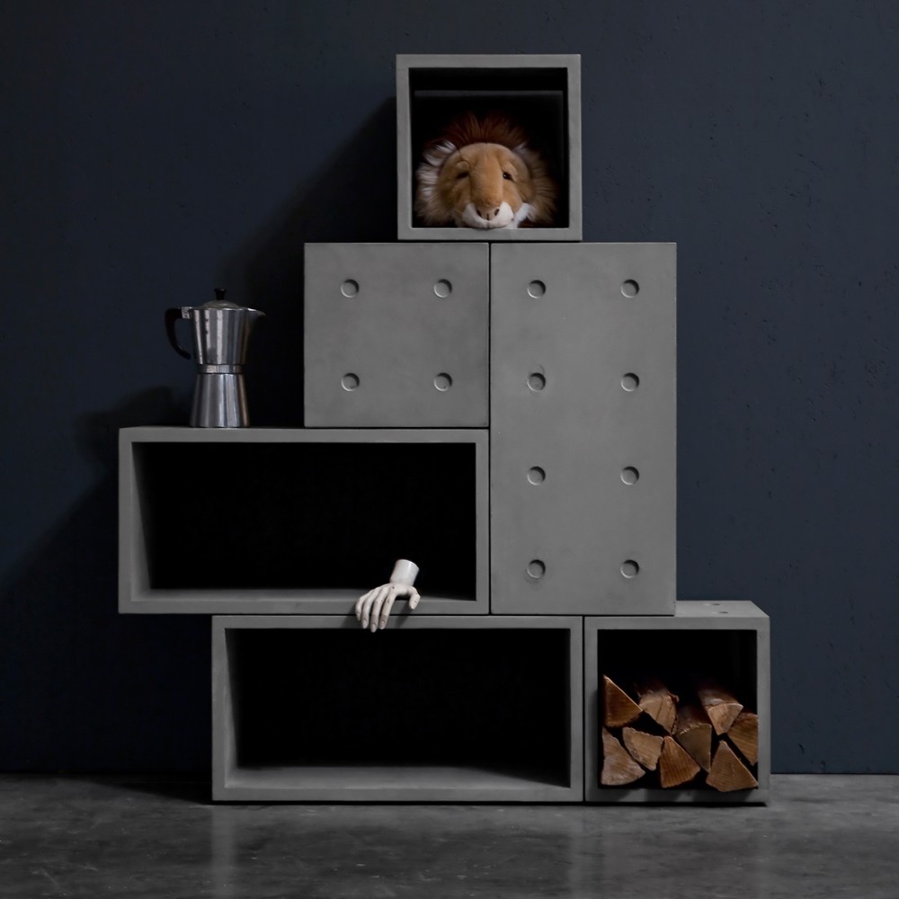 Alexandre Dubreuil firma Dice 3M3L per Lyon Béton come un invito a modellare lo spazio con libertà assoluta. La geometria cubica e la superficie materica in fibrocemento dialogano con la luce, creando un’atmosfera minimalista e scultorea, quasi monolitica. L’impatto visivo di questo mobile contenitore è deciso e contemporaneo: ogni modulo sembra sospeso tra rigore industriale e creatività personale, trasformando l’ambiente in un luogo dinamico e sorprendente.
