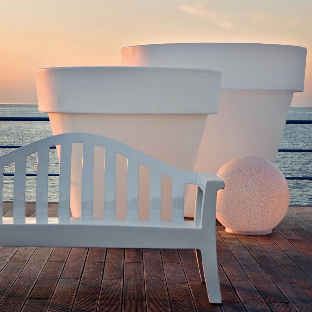 Realizzato in LLDPE 100% riciclabile tramite stampaggio rotazionale, Big Bo vaso unisce robustezza e leggerezza, risultando sorprendentemente facile da spostare nonostante i suoi 200 cm di diametro e 180 cm di altezza. È resistente ai raggi UV, agli agenti atmosferici e alle temperature estreme, garantendo versatilità e durata sia in giardini, terrazze e spazi pubblici, sia in hall di hotel e grandi open space. Pronto all’uso, può ospitare piante di grandi dimensioni o diventare un elemento decorativo autonomo; disponibile anche in versione con illuminazione integrata per un effetto ancora più scenografico.