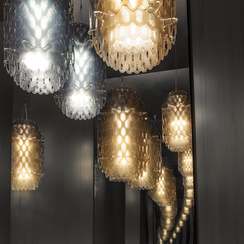 Nel cuore dell’evoluzione del design contemporaneo, la Chantal sospensione di Slamp nasce dall’ispirazione di architetture leggere e trame organiche, richiamando la poesia e la funzionalità dei grandi spazi del passato e del presente. La sua struttura, composta da una sequenza di esagoni concentrici in tecnopolimero traslucido, si staglia come un nido d’ape sospeso, restituendo una presenza scultorea e raffinata. La luce, filtrando attraverso la geometria tridimensionale della lampada a sospensione, disegna atmosfere mutevoli e avvolgenti, capaci di arricchire sia ambienti moderni che contesti più classici con un tocco etereo e architettonico.