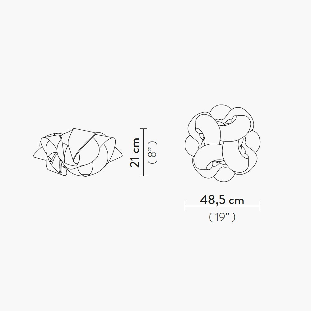 Realizzata esclusivamente da Slamp e firmata da Costantino Morosin, Fabula parete soffitto è disponibile in due dimensioni (Ø48,5 cm e Ø60 cm, altezza ca. 21 cm) e si distingue per la leggerezza visiva unita a una solida struttura. Compatibile con sorgenti E27 (3x12W per la versione piccola, 5x12W per la grande, non incluse), offre una diffusione omogenea e intensa della luce, ideale come illuminazione principale o d’atmosfera. Il montaggio versatile (soffitto o parete) consente di valorizzare soggiorni, camere, cucine, bagni, ingressi e spazi contract con un gesto luminoso sofisticato e funzionale.