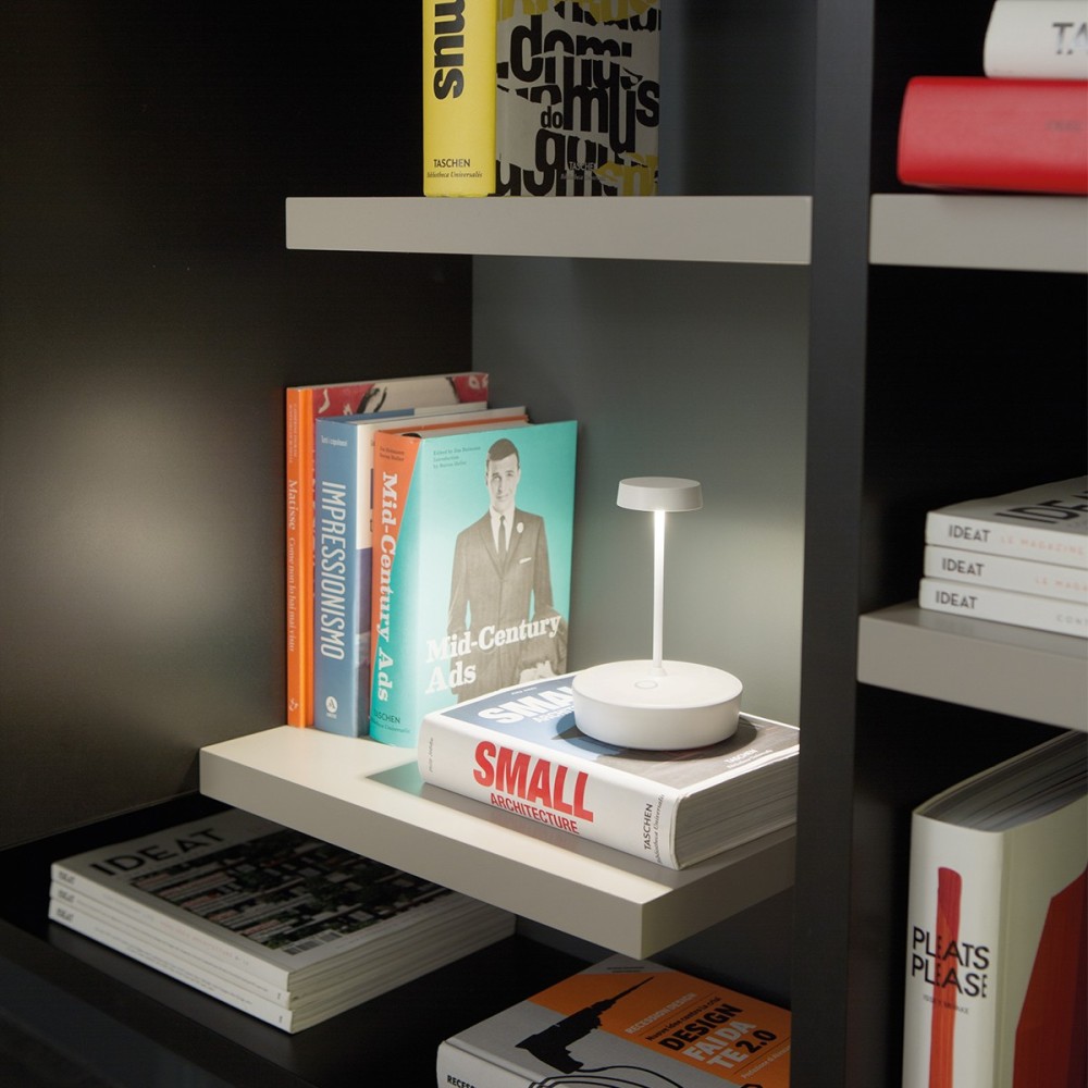 Adatta a molteplici ambienti, dalla camera da letto al living, fino agli spazi esterni, la lampada ricaricabile di Zafferano accompagna ogni momento con discrezione, trasformando la percezione dello spazio attraverso fasci luminosi calibrati e incisivi, capaci di modellare l’atmosfera in modo silenzioso ma determinante.